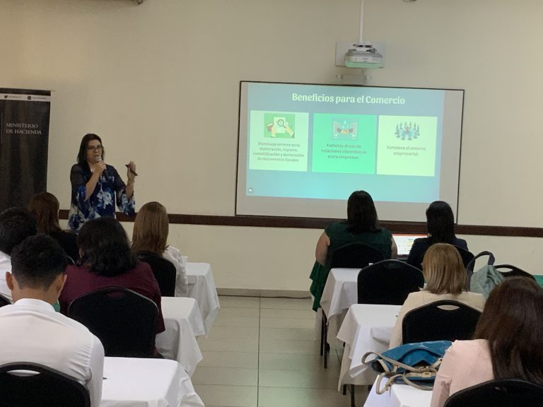 El equipo del Programa de Implementación de los Documentos Tributarios Electrónicos DTES de El Salvador ha realizado divulgaciones a distintos sectores económicos del país, como Gremios, Asociaciones, Cooperativas, Corporación, Universidad entre otros, con el propósito de abordar los principales temas del Programa. Las ponencias desarrolladas han sido los beneficios que trae tanto para el país, el comercio y la Administración Tributaria. También el modelo de facturación a implementar cubriendo las necesidades propias del comercio local, presentando los documentos tributarios que aplicarán para operaciones con contribuyente a contribuyente así como las operaciones de contribuyente y consumidor final. Esto se realizará por etapas, en la primera etapa, se agruparán los comprobantes de crédito fiscal y los documentos relacionados. Posteriormente se introducirán los otros documentos tributarios.